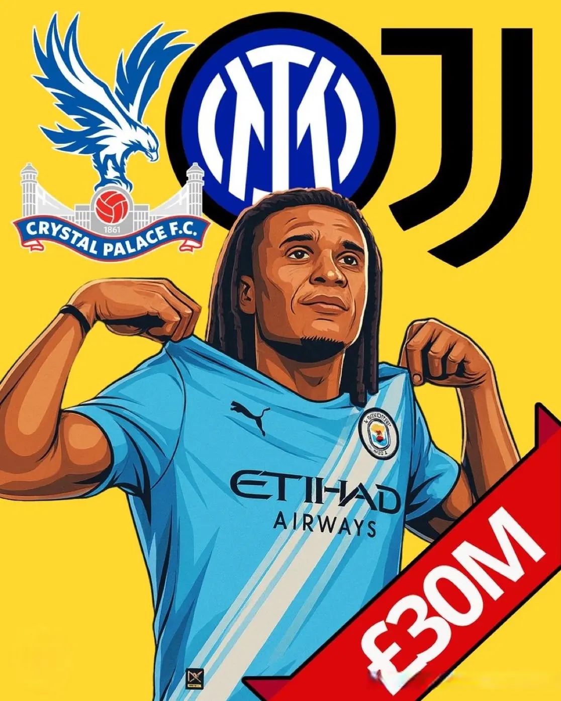近日《Caught Offside》的报道称,意甲的国际米兰、尤文图斯、英超的水晶宫等队在争夺阿克,曼城愿意听取3000万欧元的报价。